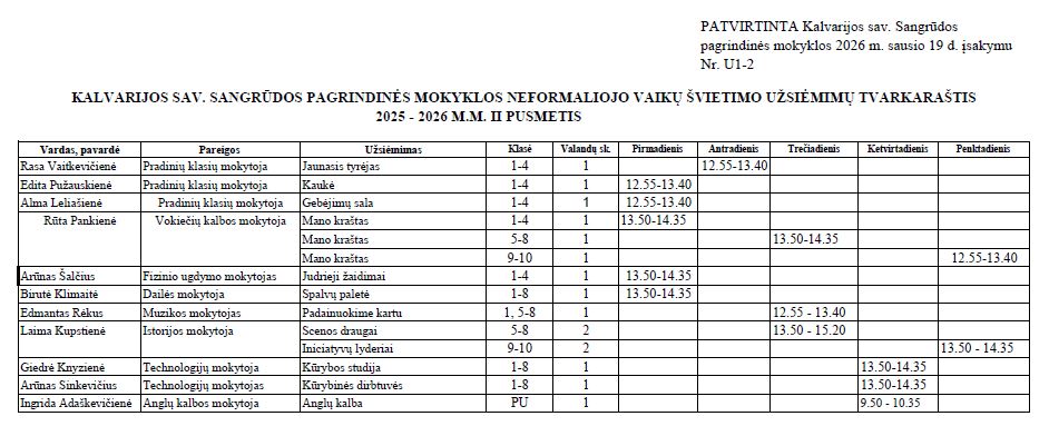 NEFORMALIOJO VAIKŲ ŠVIETIMO ORGANIZAVIMO TVARKOS APRAŠAS